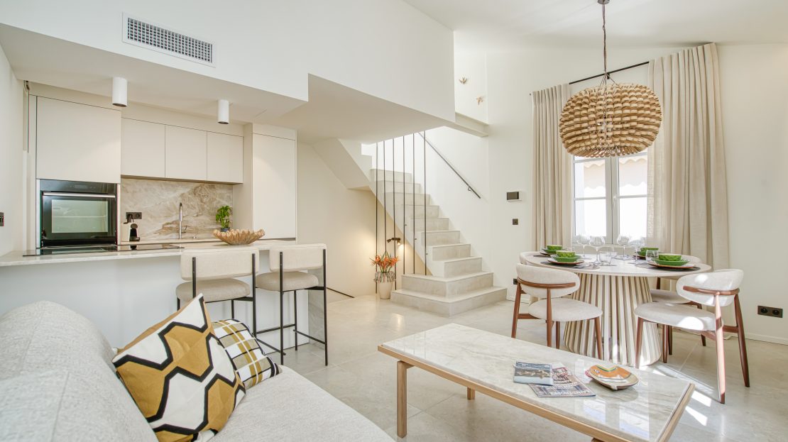 L’espace de vie lumineux et accueillant dispose d’un salon TV élégant, d’une salle à manger conviviale et d’une cuisine ouverte haut de gamme. Profitez également d’une terrasse tropézienne ensoleillée, idéale pour savourer vos petits-déjeuners ou apéritifs en toute sérénité.
