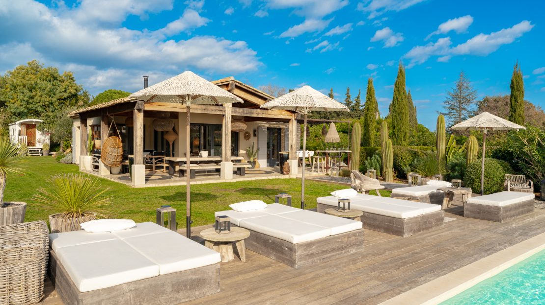Piscine avec pool house, terrasses, wifi, barbecue, climatisation dans la villa et la roulotte.
