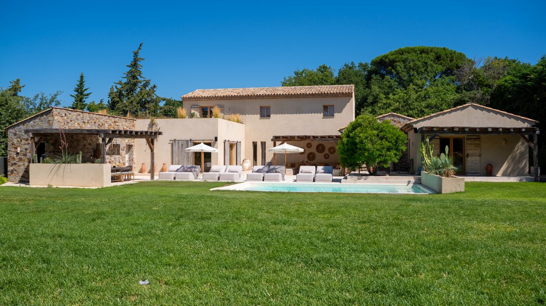 Les terrasses multiples entourant la villa créent un paysage extérieur dynamique. La piscine chauffée de 6x10m, les espaces de cuisine d’été équipée d’une plancha, et le terrain de boule ajoutent des dimensions ludiques et gastronomiques à l’espace extérieur.